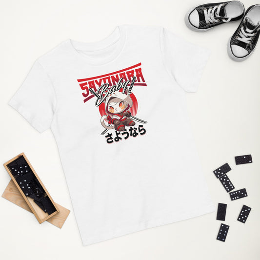 Organic Cotton 'Sayonara' Japanese Kids Funny Cat T-shirt